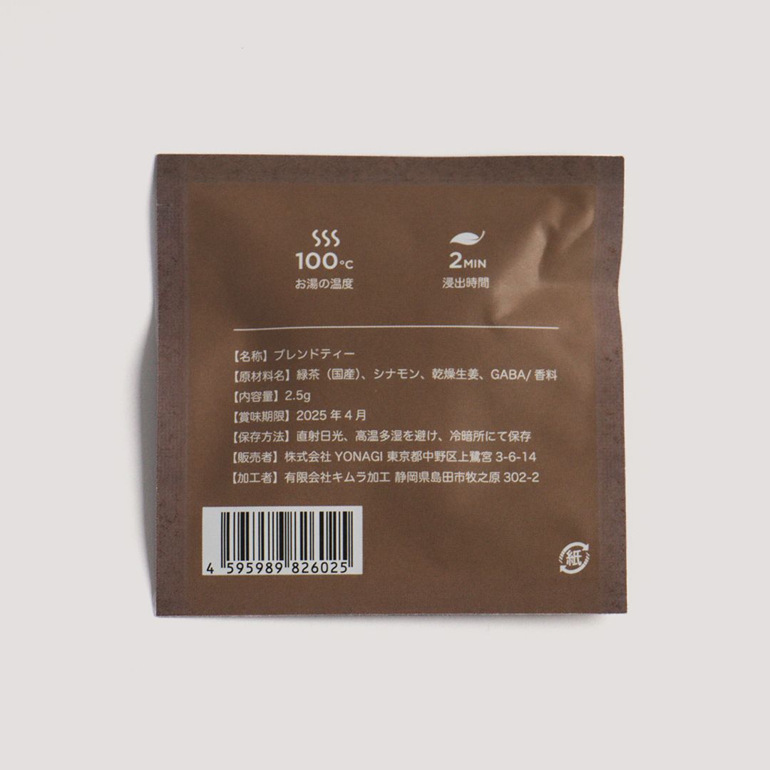 少し肌寒い日やリラックスしたい夜にぴったりのブレンド。静岡県牧之原産の一番茶を贅沢に使用した深煎り焙じ茶をベースに、レモンのように爽やかなセイロンシナモンと、まろやかさのあるジンジャーをブレンドしました。健康美容業界で注目されるGABAも配合、リラックスタイムを演出する特別な一杯です。